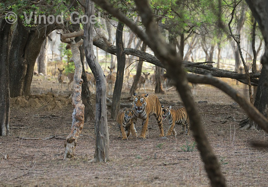 Tigress Arrowhead with Cubs at Ranthambhore Tiger Reserve in the State of Rajasthan